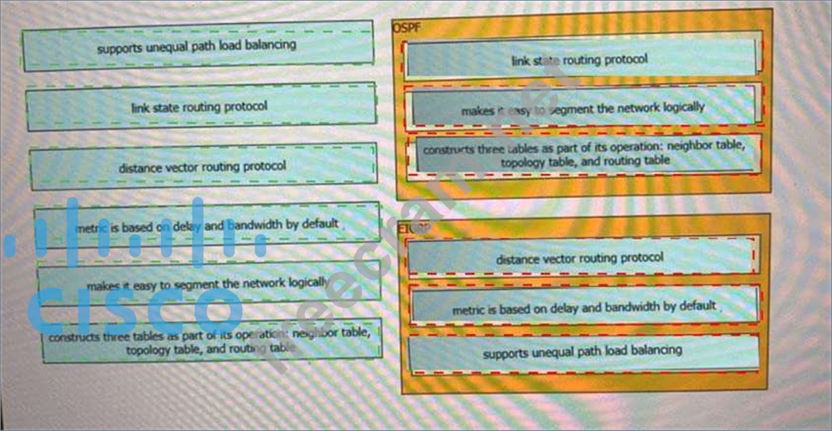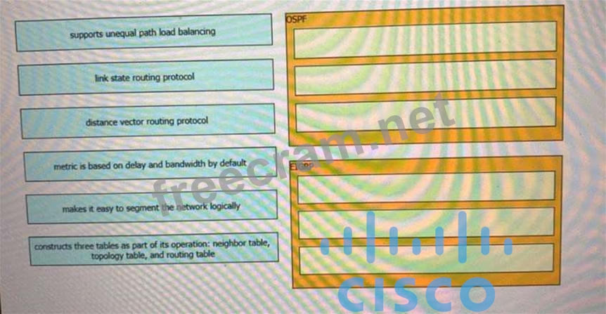 Drag the drop the description from the left onto the routing protocol they describe on the right.