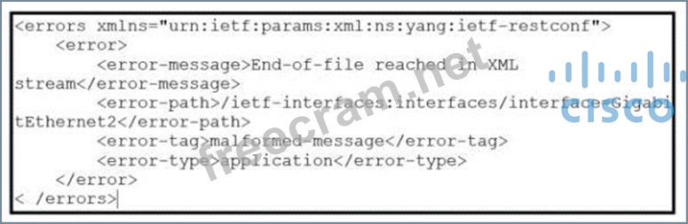 Refer to the exhibit. An engineer is using XML in an application to send information to a RESTCONF-enabled device. After sending the request, the engineer gets this response message and a HTTP response code of 400. What do these responses tell the engineer?