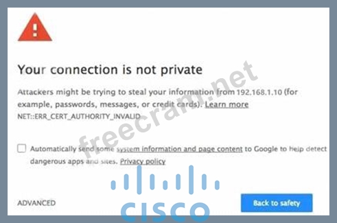 An engineer is designing a guest portal on Cisco ISE using the default configuration. During the testing phase, the engineer receives a warning when displaying the guest portal. Which issue is occurring?