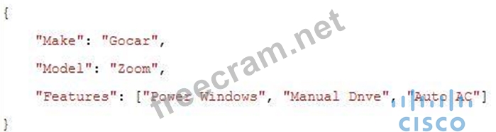 Refer to the exhibit. What is the JSON syntax that is formed from the data?