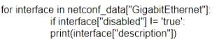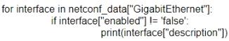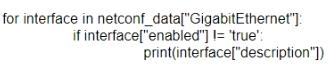 Which Python code snippet prints the descriptions of disabled interfaces only?