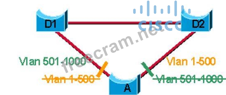 What would be the preferred way to implement a loopless switch network where there are 1500 defined VLANs and it is necessary to load the shared traffic through two main aggregation points based on the VLAN identifier?