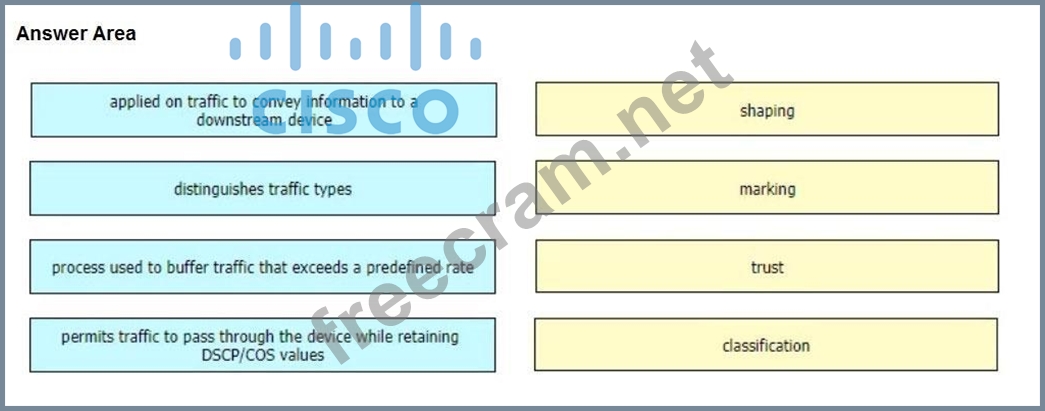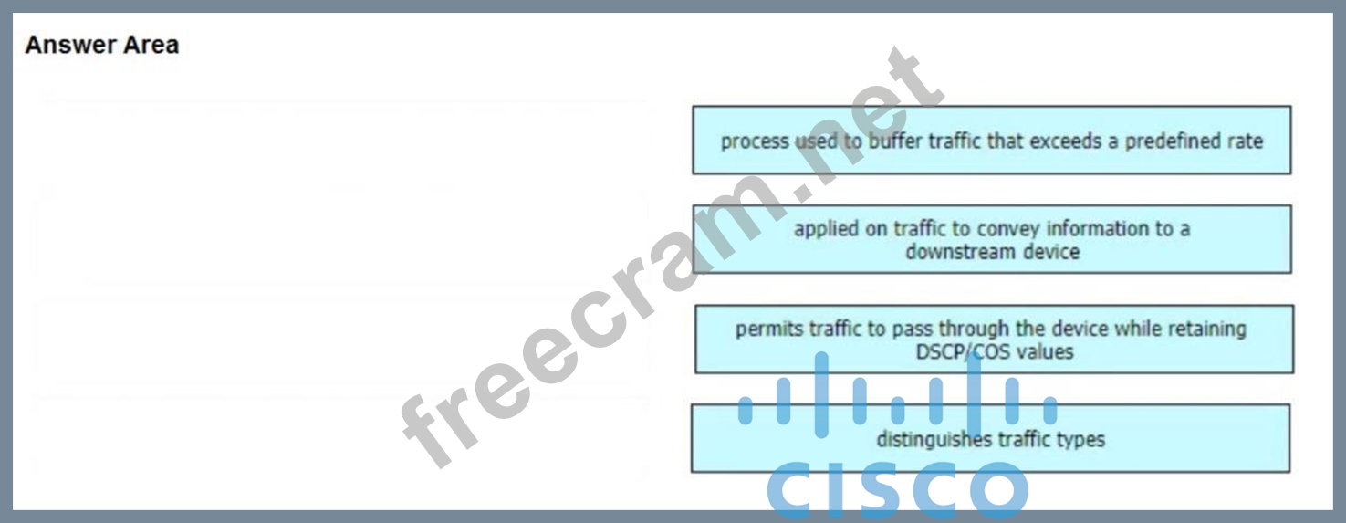 Drag and drop the characteristics from the left onto the QoS components they describe on the right.