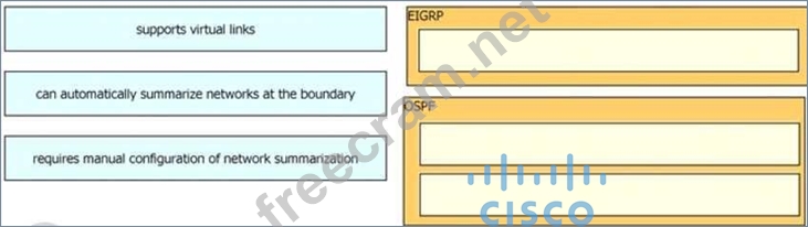 Drag and drop the characteristics from the left onto the routing protocols they describe on the right.