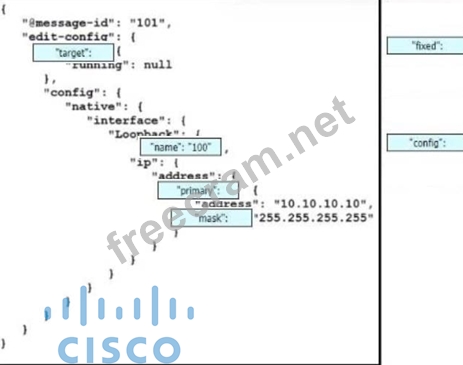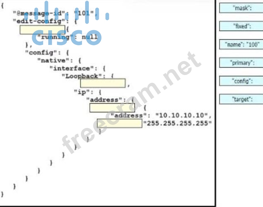 Drag and drop the snippets onto the blanks within the code to construct a script that configures a loopback interface with an IP address. Not all options are used.