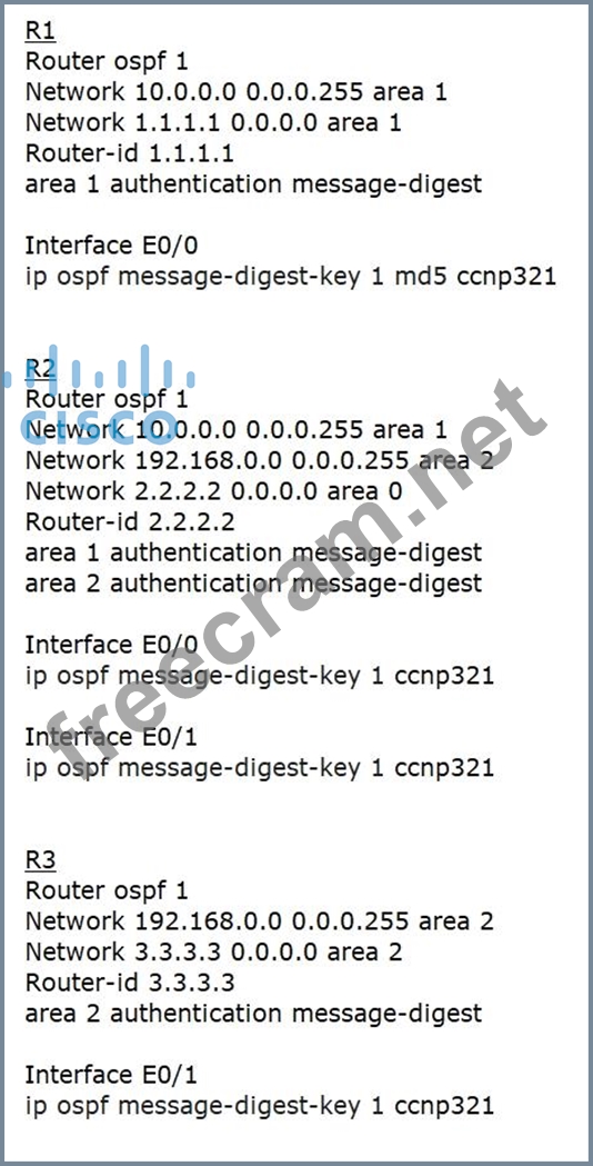 Configure OSPF on all three routers according to the topology diagram to achieve these goals: