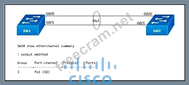 Refer to the exhibit. After an engineer configures an EtherChannel between switch SW1 and switch SW2, this error message is logged on switch SW2. Based on the output from SW1 and the log message received on Switch SW2, what action should the engineer take to resolve this issue?