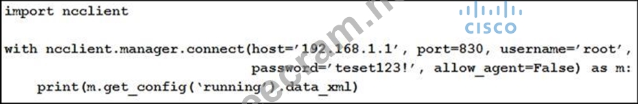 Refer to the exhibit. After running the code in the exhibit, which step reduces the amount of data that the NETCONF server returns to the NETCONF client, to only the interface's configuration?