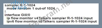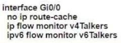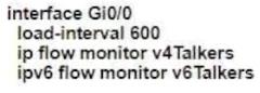 Refer to the exhibit. An administrator must collect basic statistics about the approximate amount of IPv4 and IPv6 flows entering Gi0/0 using NetFlow. However, the administrator is concerned that NetFlow processing during periods of high utilization on Gi0/0 will overwhelm the router CPU.