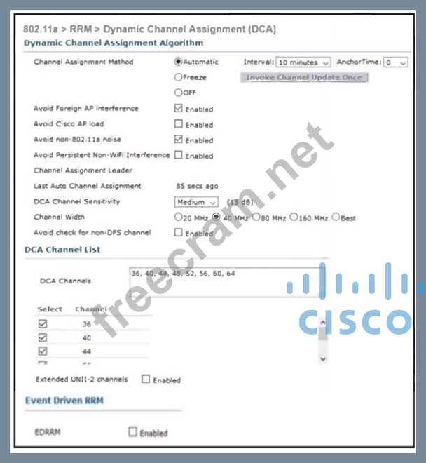 Refer to the exhibit. An engineer is troubleshooting an issue with non-Wi-Fi interference on the 5- GHz band. The engineer has enabled Cisco CleanAir and set the appropriate traps, but the AP does not change the channel when it detects significant interference. Which action will resolve the issue?