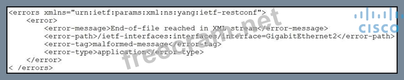 Refer to the exhibit. An engineer is using XML in an application to send information to a RESTCONF-enabled device. After sending the request, the engineer gets this response message and a HTTP response code of 400. What do these responses tell the engineer?