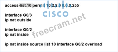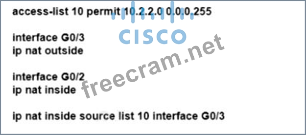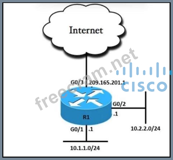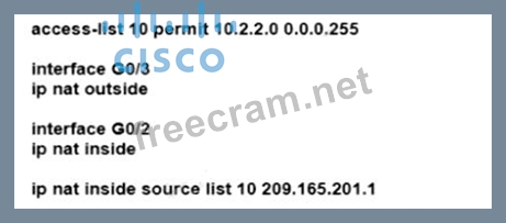Refer to the exhibit. An engineer must allow all users in the 10.2.2.0/24 subnet to access the internet. To conserve address space, the public interface address of 209.165.201.1 must be used for all external communication.