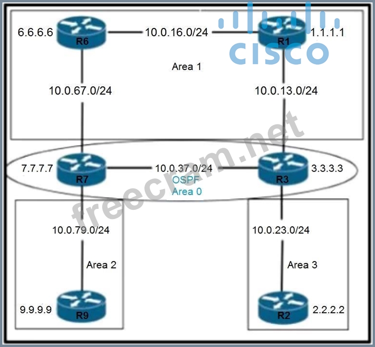 Refer to the exhibit. An engineer must prevent the R6 loopback from getting into Area 2 and Area 3 from Area 0. Which action must the engineer take?