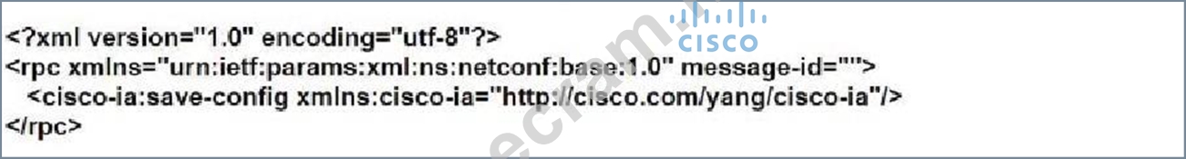 Refer to the exhibit. An engineer must save the configuration of router R2 using the NETCONF protocol. Which script must be used?