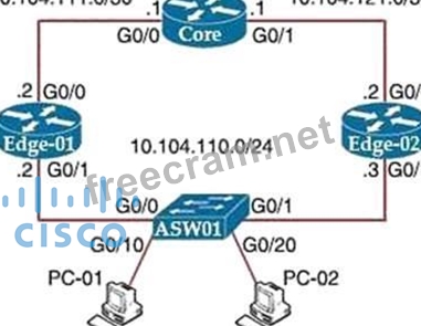 Refer to the exhibit. Edge-01 is currently operational as the HSRP primary with priority 110.
