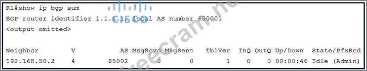 Question 557: Refer to the exhibit. Router BRDR-1 is configured to receive...