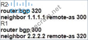 Question 87: A network engineer configures BGP between R1 and R2. Both ro...