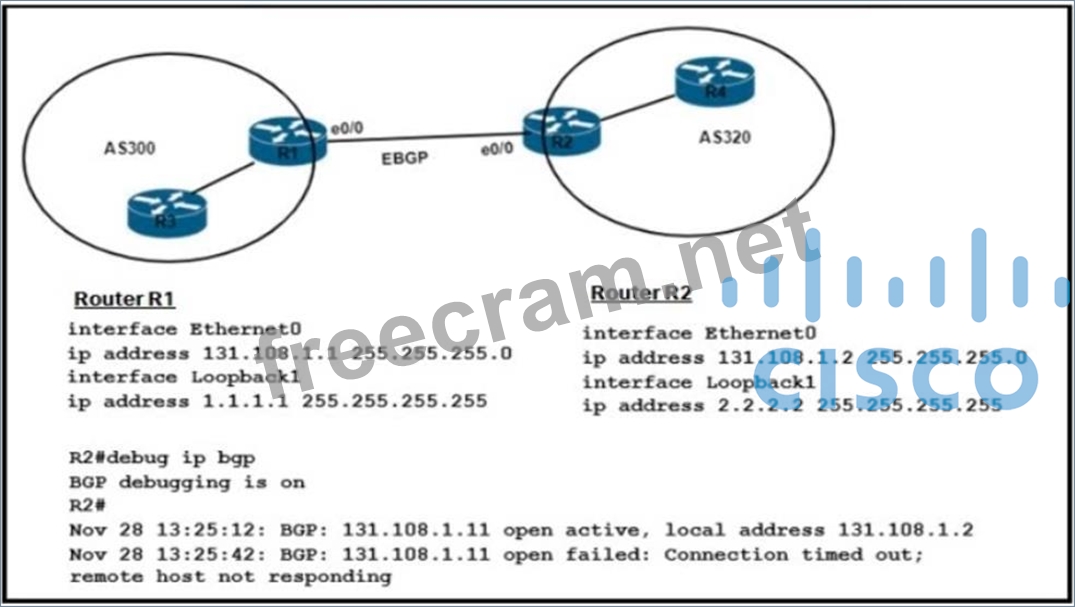 Question 521: Refer to the exhibit. Cisco IOS routers R1 and R2 are interc...