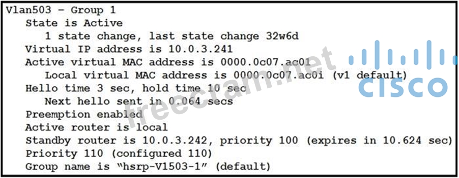 Question 543: Refer to the exhibit. An engineer configures a new HSRP grou...