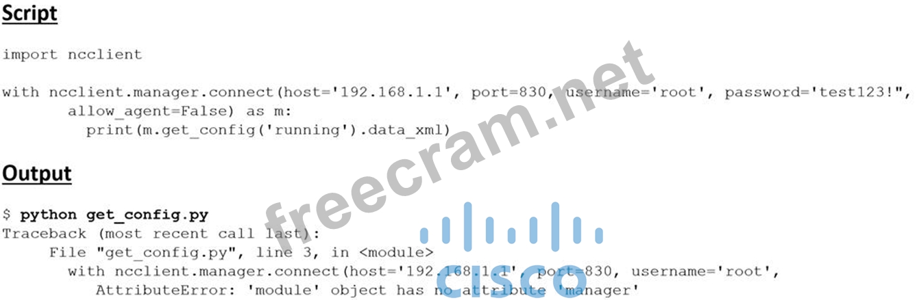 Question 563: Refer to the exhibit. An engineer builds an EEM script to ap...