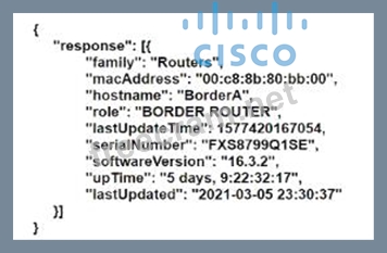 Question 302: (Exhibit) What does the cisco DNA REST response indicate?...