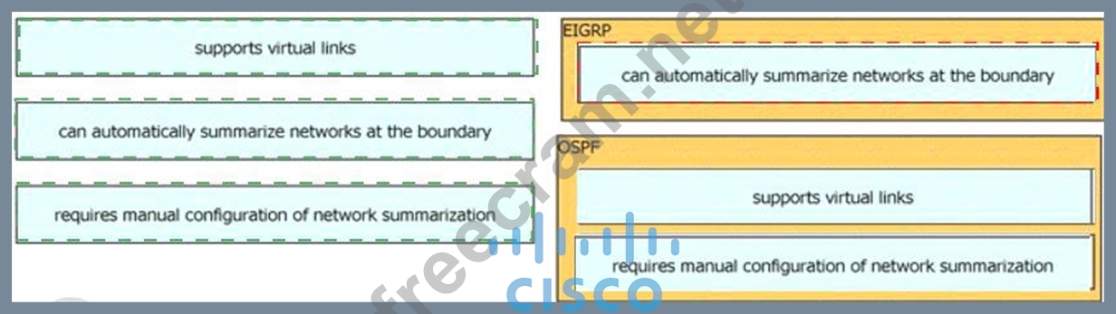 Drag and drop the characteristics from the left onto the routing protocols they describe on the right.