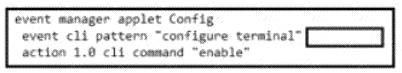 Refer to the exhibit. An engineer constructs an EEM applet to prevent anyone from entering configuration mode on a switch. Which snippet is required to complete the EEM applet?