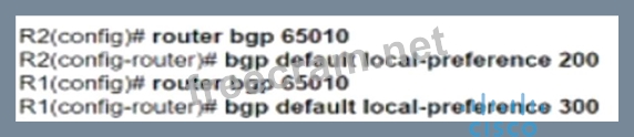 Refer to the exhibit. Which configuration must be applied to ensure that the preferred path for traffic from AS