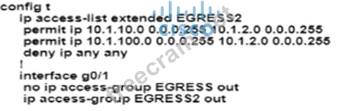 An engineer must modify the access control list EGRESS to allow all IP traffic from subnet 10.1.10.0/24 to