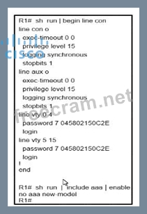 Question 363: An engineer must protect the password for the VTY lines agai...
