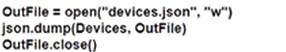 Which Python snippet should be used to store the devices data structure in a JSON file?