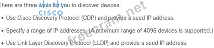 Question 364: Which three methods does Cisco DNA Centre use to discover de...