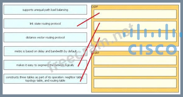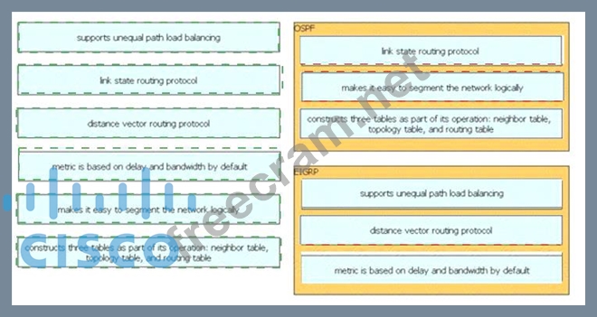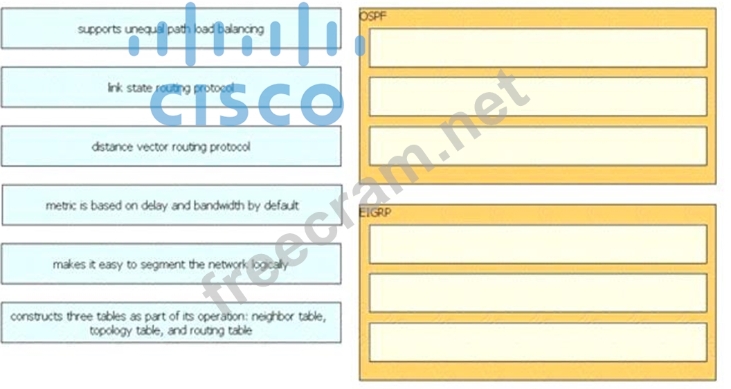 Drag and drop the characteristics from the left onto the routing protocols they describe on the right.