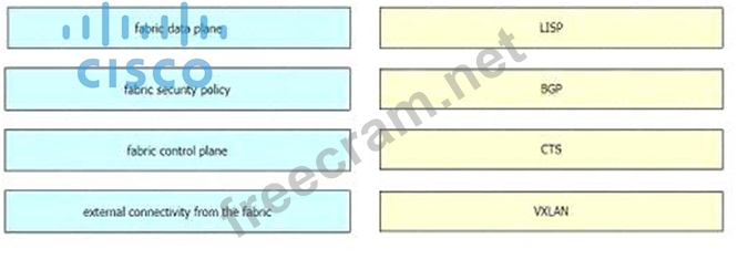 Drag and drop the Cisco SD-Access solution areas from the left onto the protocols they use on the right.