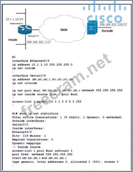 Refer to the exhibit. A network engineer configures NAT on R1 and enters me show command to verity me configuration What toes the output confirm?