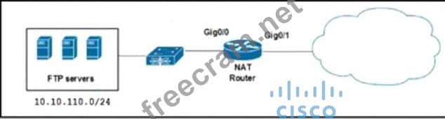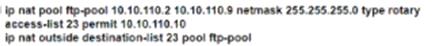 Refer to the exhibit. A network engineer must load balance traffic that comes from the NAT Router and is destined to 10.10.110.10, to several FTP servers. Which two commands sets should be applied? (Choose two).