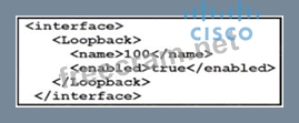 The code in the exhibit is an XML representation of a configuration for a loopback interface. The <enabled>true</enabled> tag within the <Loopback> tags indicates that the loopback interface is being enabled, or "unshut." In Cisco IOS, shutting down an interface means administratively disabling it, preventing it from forwarding or receiving traffic. Conversely, unshutting an interface enables it to become active and operational. References: * Implementing and Operating Cisco Service Provider Network Core Technologies (SPCOR) * Cisco's official documentation and e-learning resources on NAT and interface configurations.