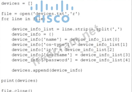 Question 420: Which Python snippet should be used to store the devices dat...