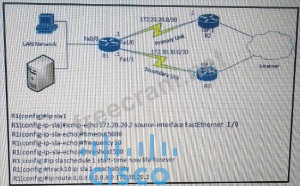 Refer to the exhibit. After implementing the configuration 172.20.20.2 stops replaying to ICMP echoes, but the default route fails to be removed. What is the reason for this behavior?