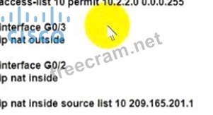 * The ip nat outside command applied to an external interface.