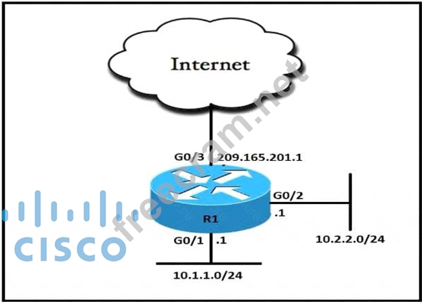 The task requires configuring NAT (Network Address Translation) to allow all users in the subnet 10.2.2.0/24 to access the Internet using a single public IP address, which is 209.165.201.1, for all external communication.