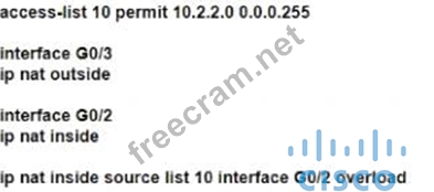 * A NAT rule that matches traffic permitted by the ACL and translates it using the IP address of the external interface with overload enabled.