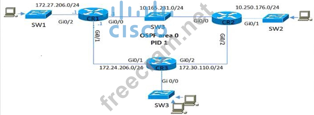 CR2 and CR3 ate configured with OSPF. Which configuration, when applied to CR1. allows CR1 to exchange OSPF Information with CR2 and CR3 but not with other network devices or on new Interfaces that are added to CR1?