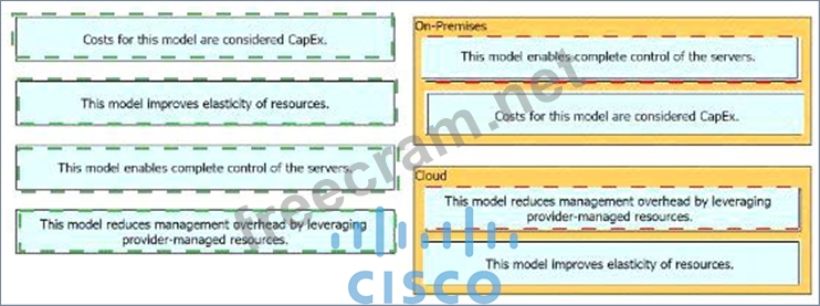 Drag and drop the characteristics from the left onto the infrastructure deployment models on the right.