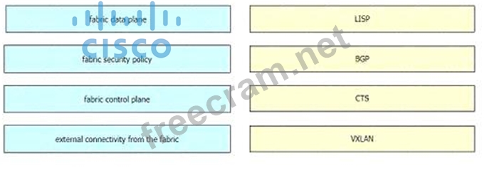 Drag and drop the Cisco SD-Access solution areas from the left onto the protocols they use on the right.