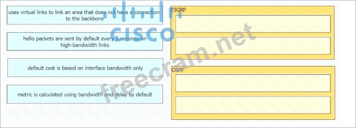 Drag the characteristics from the left onto the routing protocols they describe on the right.