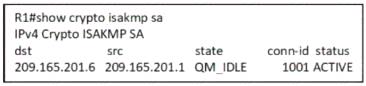 Refer to the exhibit. After configurating an IPsec VPN, an engineer enters the show command to verify the ISAKMP SA status. What does the status show?