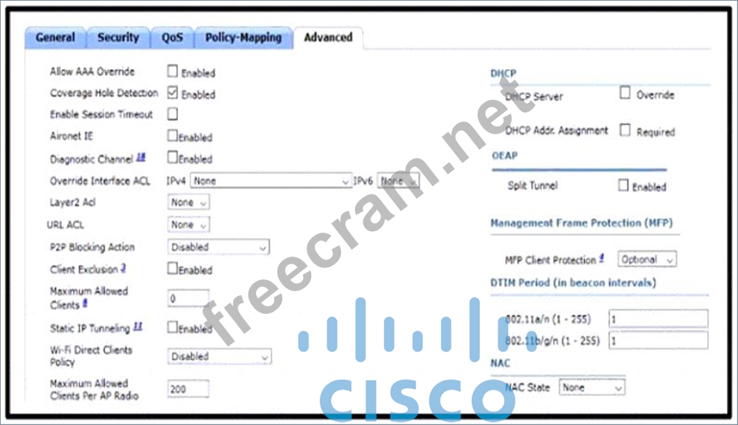 Refer to the exhibit. An engineer is investigating why guest users are able to access other guest user devices when the users are connected to the customer guest WLAN. What action resolves this issue?