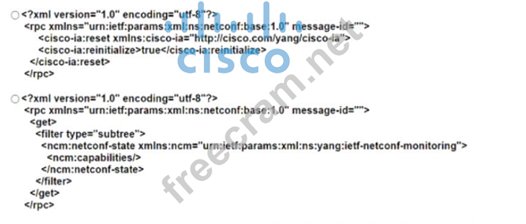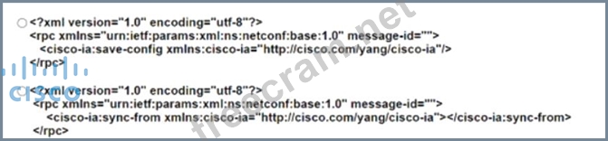 The NETCONF protocol is used for managing network device configurations and utilizes XML-based data encoding for both the configuration data and protocol messages. To save theconfiguration of router R2 using NETCONF, the script must be able to perform the necessary remote procedure calls (RPCs) to manipulate the device's configuration. Option C provides the correct sequence of RPCs to save the configuration according to the NETCONF protocol standards as defined in RFC 62411.