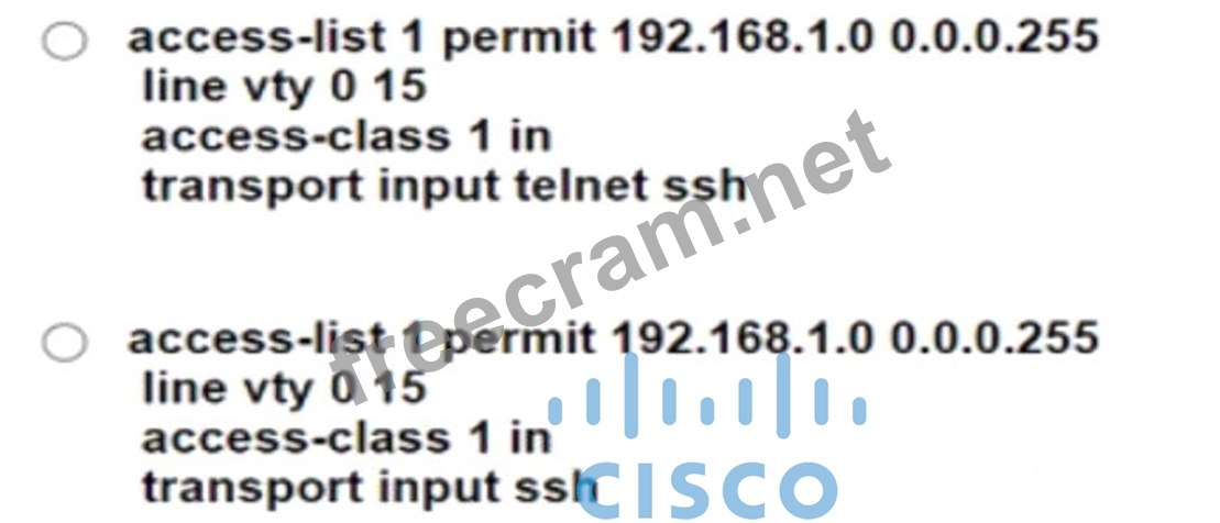 * Only administrators from the 192.168.1.0/24 subnet can access the vty lines.